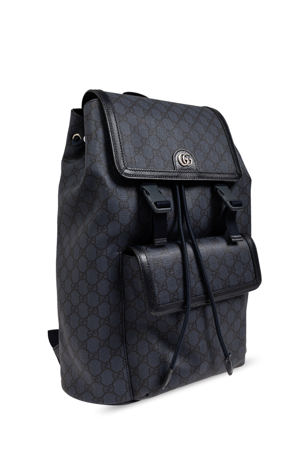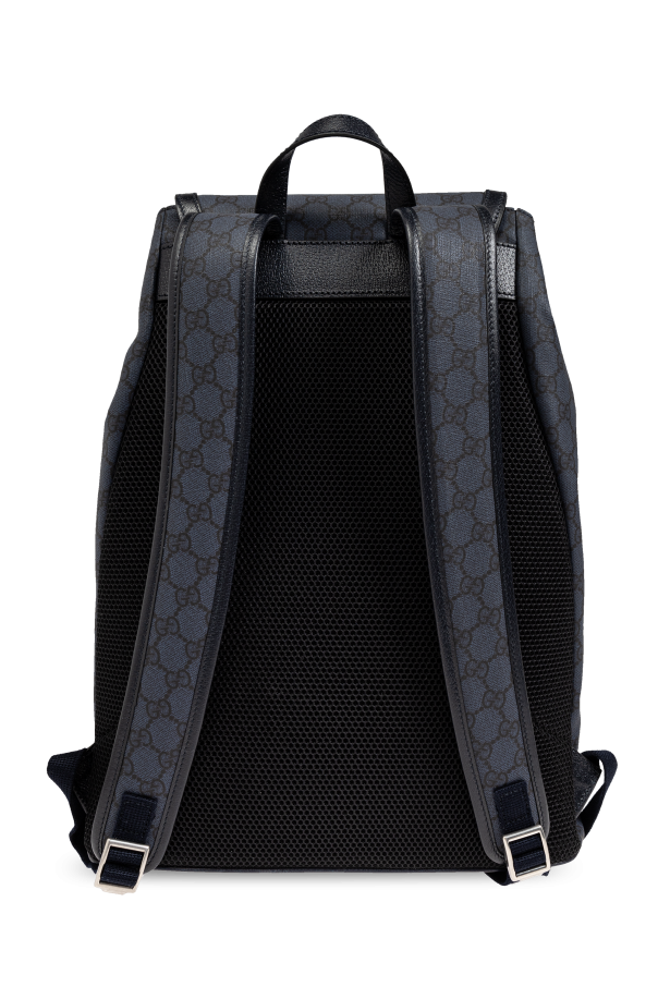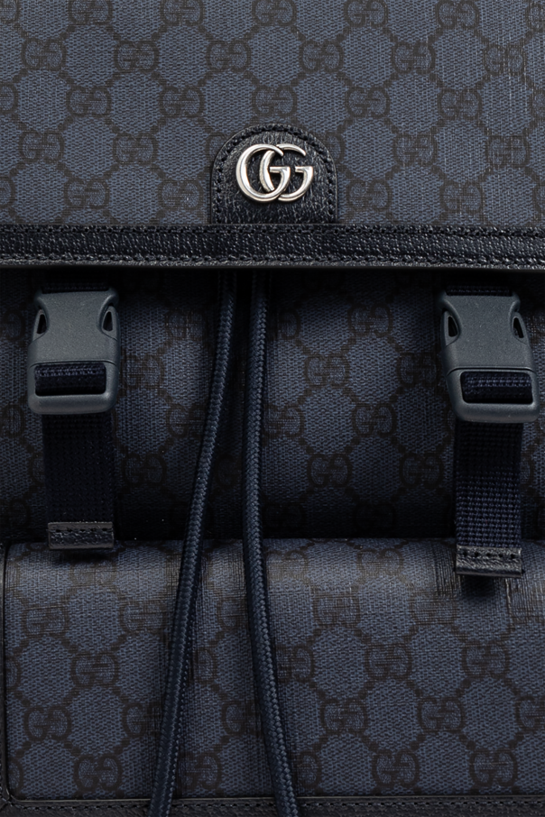 Introducing the Ophidia Large Backpack from Gucci's exclusive menswear collection, a sublime fusion of elegance and practicality. This backpack, adorned with the iconic "GG" monogram, exemplifies luxury and meticulous craftsmanship. The Ophidia Large Backpack boasts a classic rectangular shape with a flap closure for the main compartment. The exterior is crafted from premium materials, featuring a blend of leather and canvas, while the interior is lined with a refined combination of linen and cotton. Its navy hue exudes sophistication, perfectly complemented by the metal "GG" logo on the front flap. Designed with functionality in mind, this backpack includes a front zip pocket and an additional flap pocket with a magnetic snap closure. The main compartment is secured with adjustable buckle straps and drawstrings, offering ample space and a dedicated laptop pocket. The back and shoulder straps are padded with mesh material, ensuring ultimate comfort during wear. Why Choose This Product? Iconic Design: Signature "GG" monogram pattern and metal logo. Premium Materials: Exquisite leather, canvas, linen, and cotton construction. Functional Elegance: Multiple secure compartments including a laptop pocket. Comfortable Wear: Mesh-padded back and shoulder straps. Refined Details: Adjustable buckle straps and magnetic snap closures.