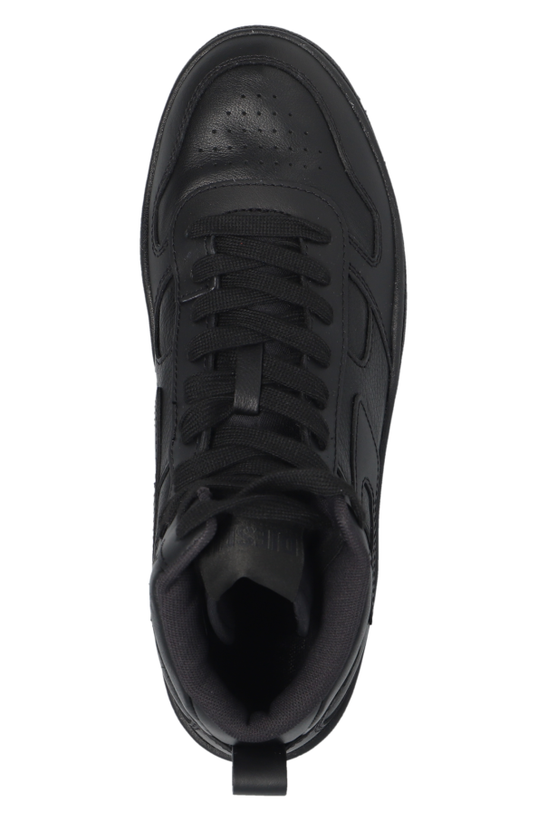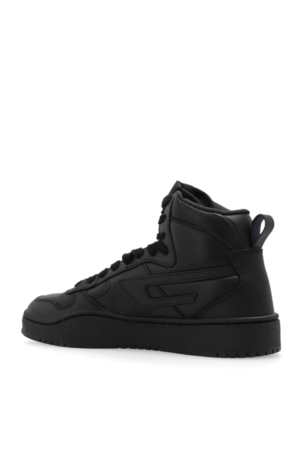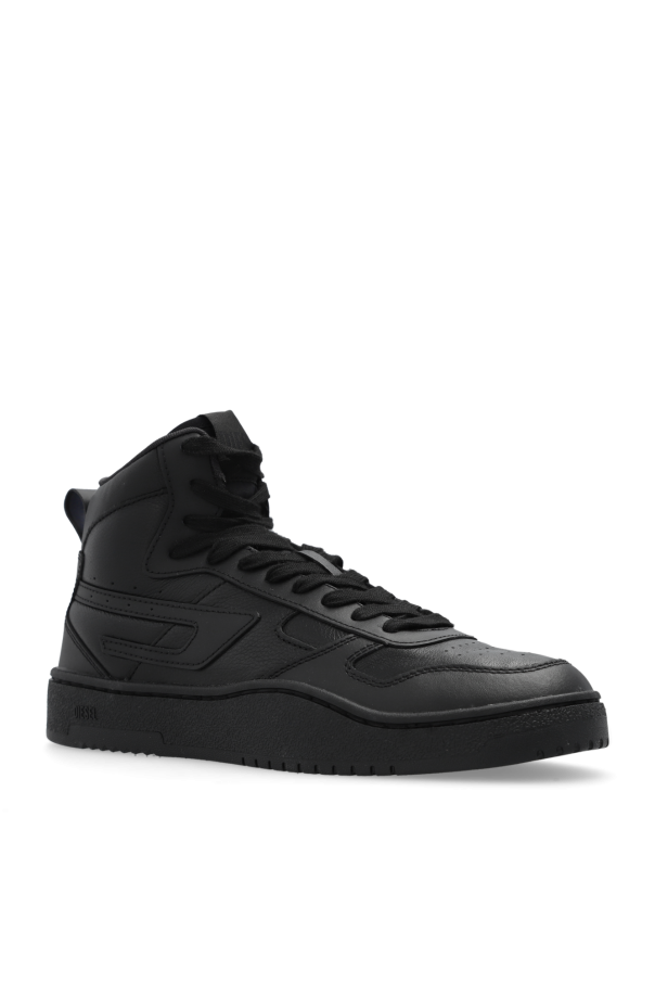 Black ‘S-UKIYO’ high-top sneakers from Diesel. Made from cow leather, this lace-up model sits on a black rubber sole and features a logo patch and perforations.