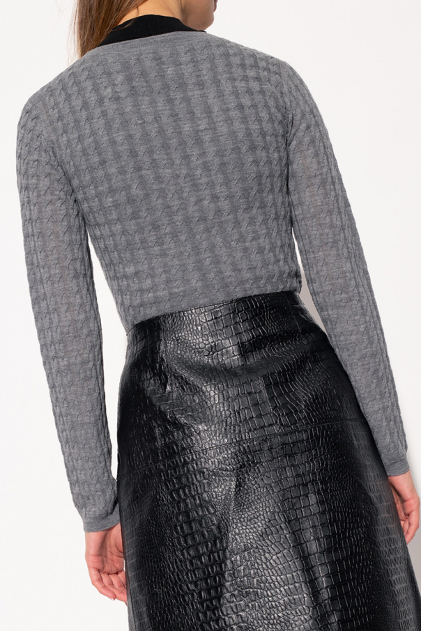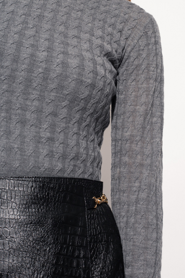 Grey sweater from Toteme. Crafted from merino wool with a decorative braid knit, this garment is enriched by ribbed trims at the neck, hem and cuffs.