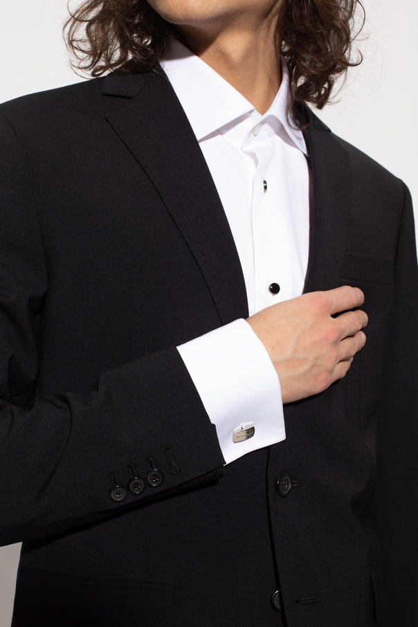 Silver-tone cuff links from Salvatore Ferragamo. Made of brass, they showcase an engraved logo.