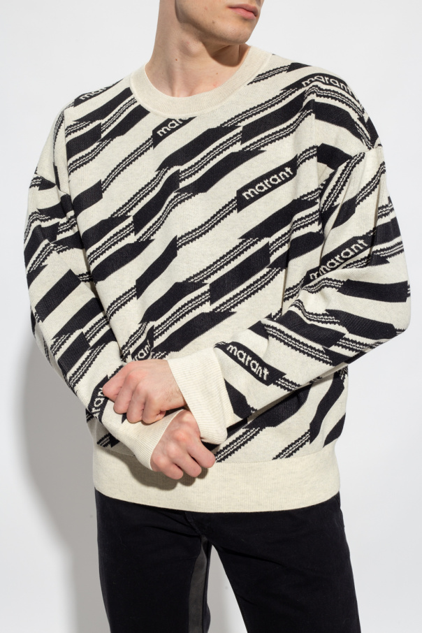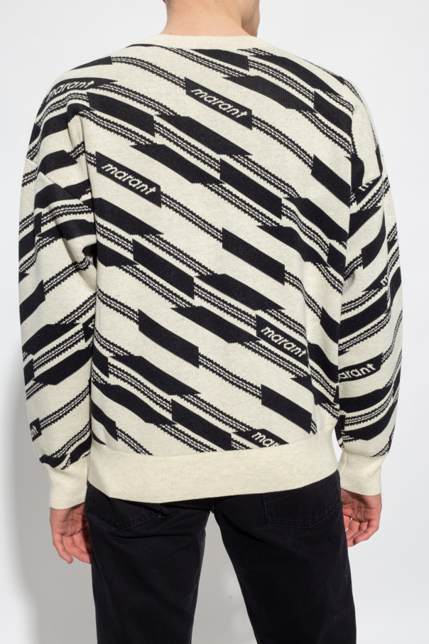 Beige and black ‘Elies’ crewneck sweater from Isabel Marant. Embroidered with the brand's logo, this style features ribbed trims on the bottom hem and cuffs.