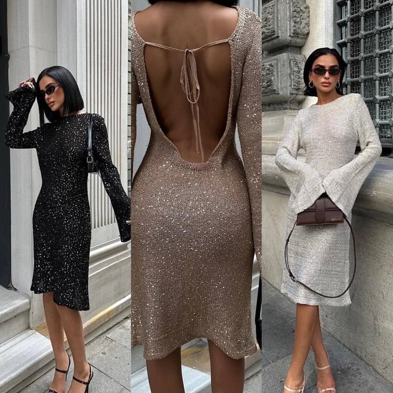 Материал:Трикотаж ,Длина рукава:Длинный ,Силуэт:С открытой спиной ,Особенности:Коктельное ,Сезон:Зима , Лето , Осень , Весна ,Длина:Миди ,Стиль:Вечерний , Романтический , Праздничный , - Shipping