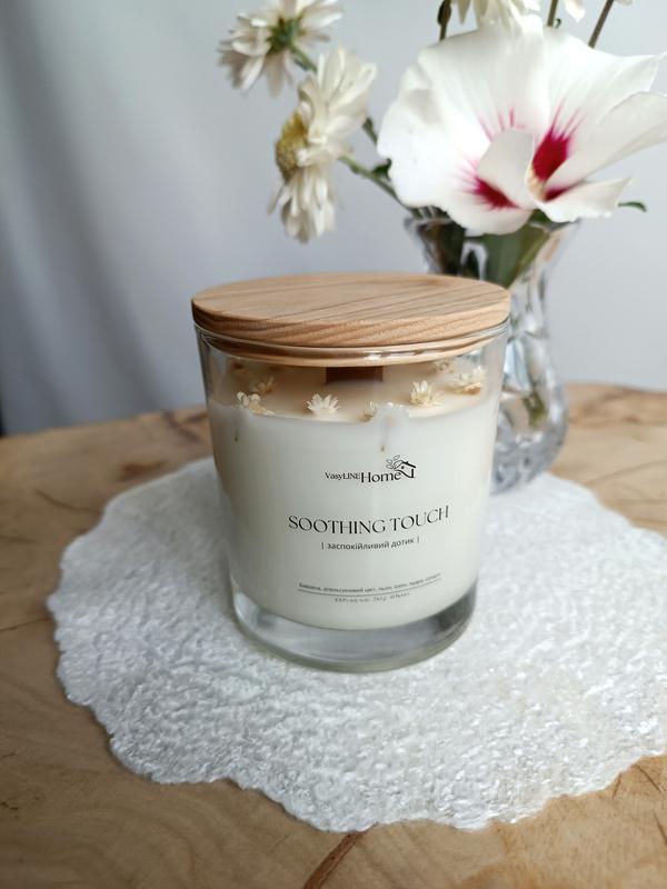 2. Натуральная соевая свеча в стеклянной емкости с деревянной крышкой. Время горения - до 45 часов.