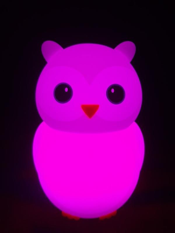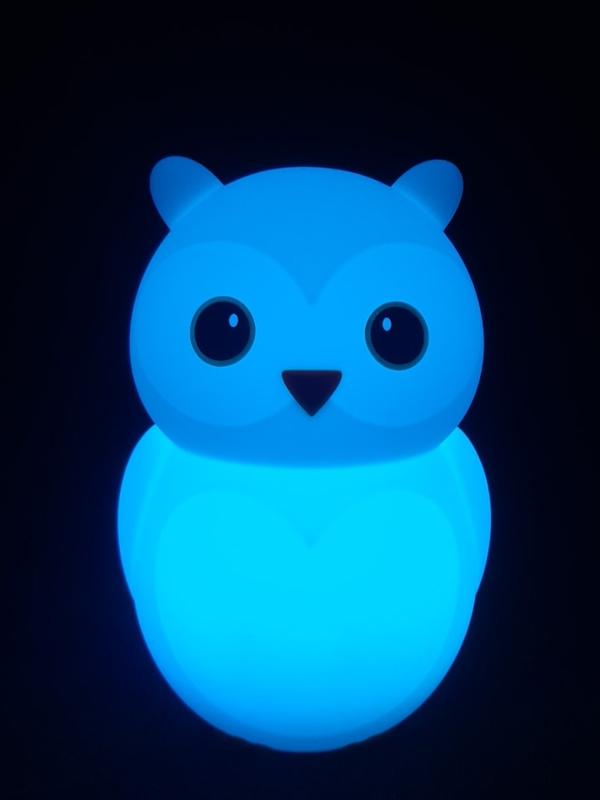 Дитячий нічник- іграшка "Сова" виготовлений з м'якого безпечного силікону, тому його можна давати дітям грати. Нічник має багато варіантів кольорів та змінює колір від дотику. В ідеальному стані.