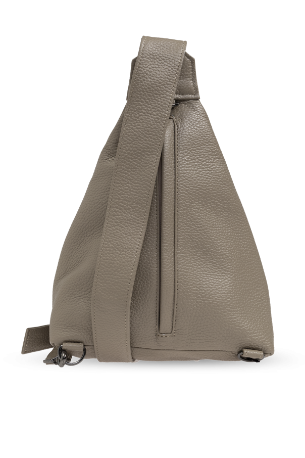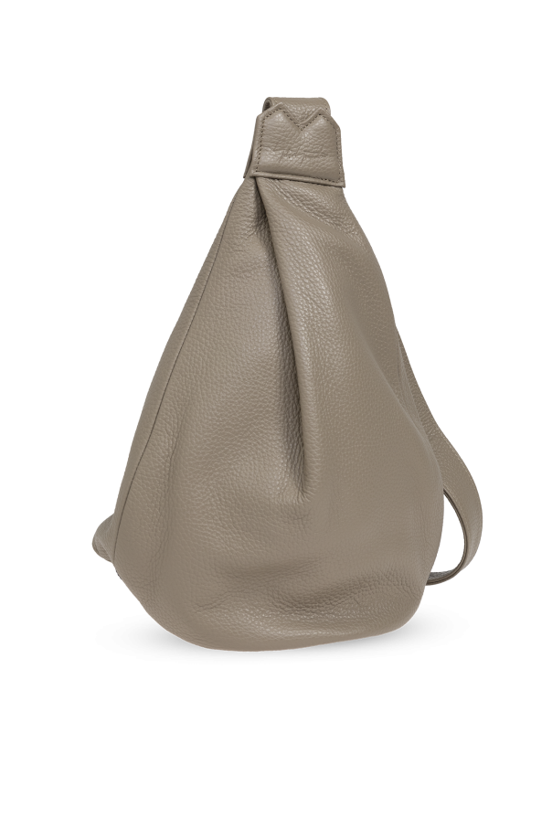 Introducing the Discord Collection Backpack, a masterpiece of modern minimalism. This sling bag showcases an asymmetrical and aerodynamic silhouette, complemented by a wide shoulder strap for effortless wear. Crafted from premium cowhide leather with a distinctive grainy texture, this backpack exudes both elegance and durability. The dominant light taupe hue imparts a versatile and chic appearance, making it an ideal accessory for any wardrobe. The subtle designer logo graces the top, bestowing an air of exclusivity. A strategically placed zipper ensures easy access to the backpack's interior, which is lined with a dark, practical fabric. Why Choose This Product? Innovative design by Discord Yohji Yamamoto, inspired by Japanese street culture. High-quality cowhide leather construction for lasting elegance. Practical features including a main compartment and an additional zip pocket. Unique asymmetrical form that defies conventional fashion norms.