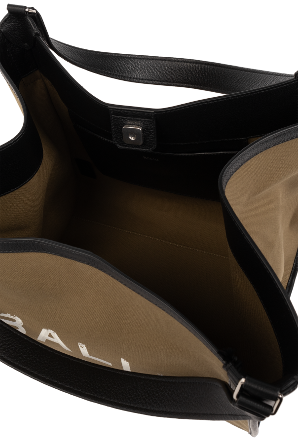 Introducing the 'Arkle Large' Shopper Bag from the prestigious house of Bally, a beacon of luxury in the fashion accessory domain. Crafted with an exquisite blend of 60% leather and 40% cotton, this bag stands as a testament to durability and high-caliber craftsmanship. The dominant beige hue, complemented by a densely woven material, exudes an aura of sophistication and quality. The bag's front is adorned with the distinguished "BALLY OF SWITZERLAND" logo in white, set against the beige background, offering a stark, recognizable contrast that speaks volumes of its designer pedigree. Black, sturdy handles, affixed with elegant metal hardware, ensure comfortable shoulder wear while enhancing the bag's structural integrity and aesthetic appeal. Designed with a rectangular, vertical orientation and softly rounded top edges, the 'Arkle Large' offers a spacious interior, secured with a magnetic snap closure. It is equipped with an inner compartment and a slip pocket, rendering it not only a statement piece but also a practical choice for those who value both form and function in their accessories. Its size and shape make it an ideal companion for a variety of occasions, seamlessly blending utility with high fashion. Why Purchase This Product? Unmatched quality and durability, thanks to its leather and cotton composition. Iconic designer recognition with the prominent "BALLY OF SWITZERLAND" logo. Elevated functionality with its spacious design, magnetic closure, and internal organization features. Elegant aesthetics with a sophisticated beige palette, accented by black, durable handles and metal details.