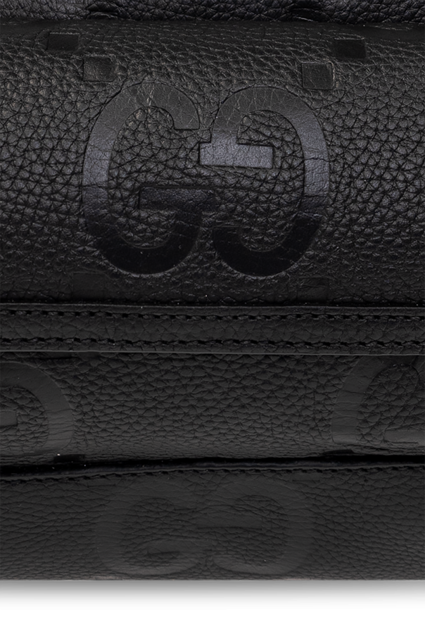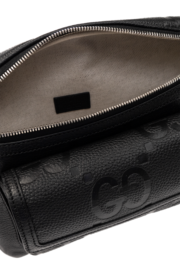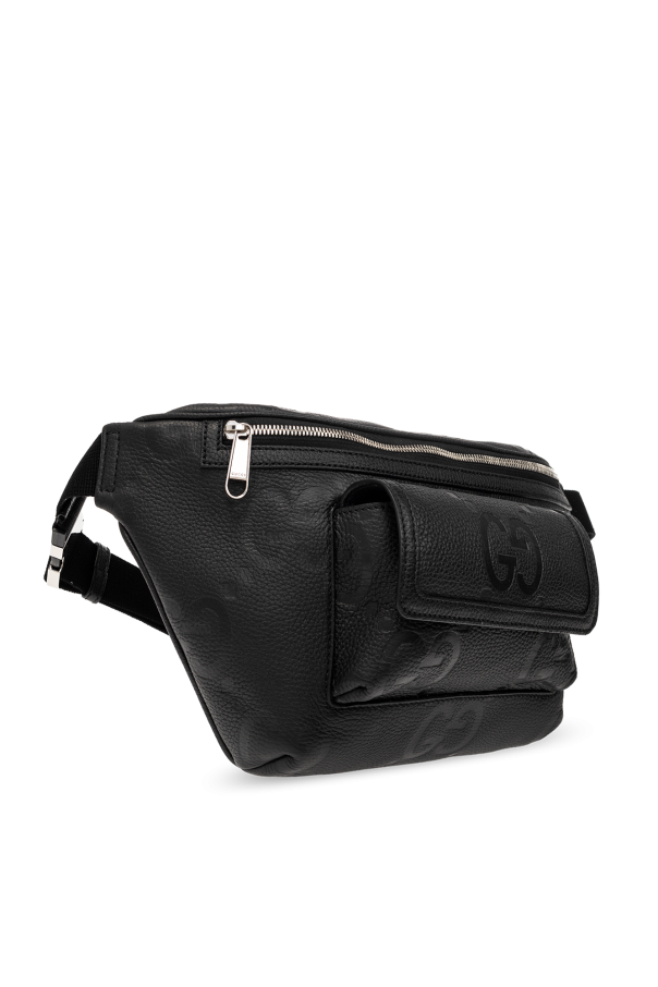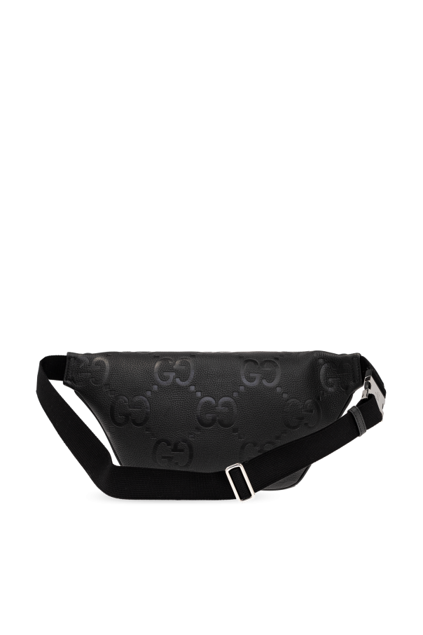Black belt bag from Gucci. Crafted from leather with an embossed Jumbo GG pattern, this model is complete with a zip fastening, front pocket with a magnetic snap, adjustable strap, one internal compartment and silver-tone metal hardware.