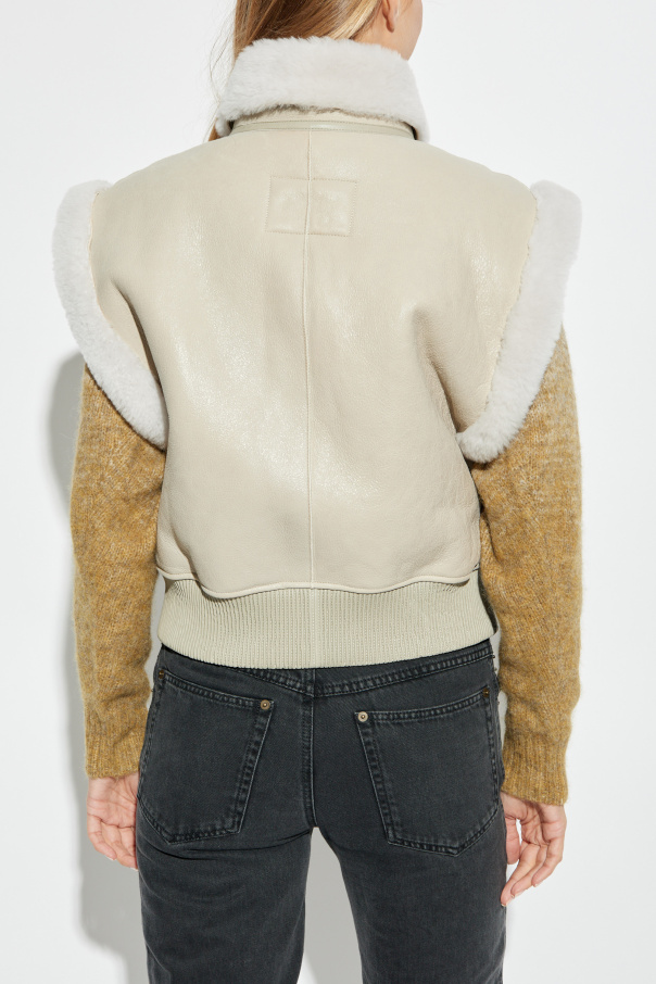 Introducing the Edwina, a reversible vest by acclaimed French designer Isabel Marant. This exquisite piece, crafted from the finest lambskin, embodies a harmonious blend of timeless elegance and contemporary style. The creamy exterior boasts a sleek finish, while the interior and trims reveal a sumptuous, plush fur in matching hues, offering both warmth and sophistication. Its streamlined silhouette is accentuated by defined shoulders and a full-length dual zipper, ensuring versatility in styling. Attention to detail is evident in its two side pockets, adorned with subtle stitching, and the fur-trimmed collar and shoulder edges, which add an air of refined luxury. The vest’s lower edge features an elastic hem for a snug fit that flatters the figure. Why Choose This Product? Crafted from premium lambskin for unmatched quality. Reversible design with a stylish dual zipper. Elegant fur-trimmed details for added warmth. Elastic hem for a perfect fit. Designed by Isabel Marant, a master of effortless chic.