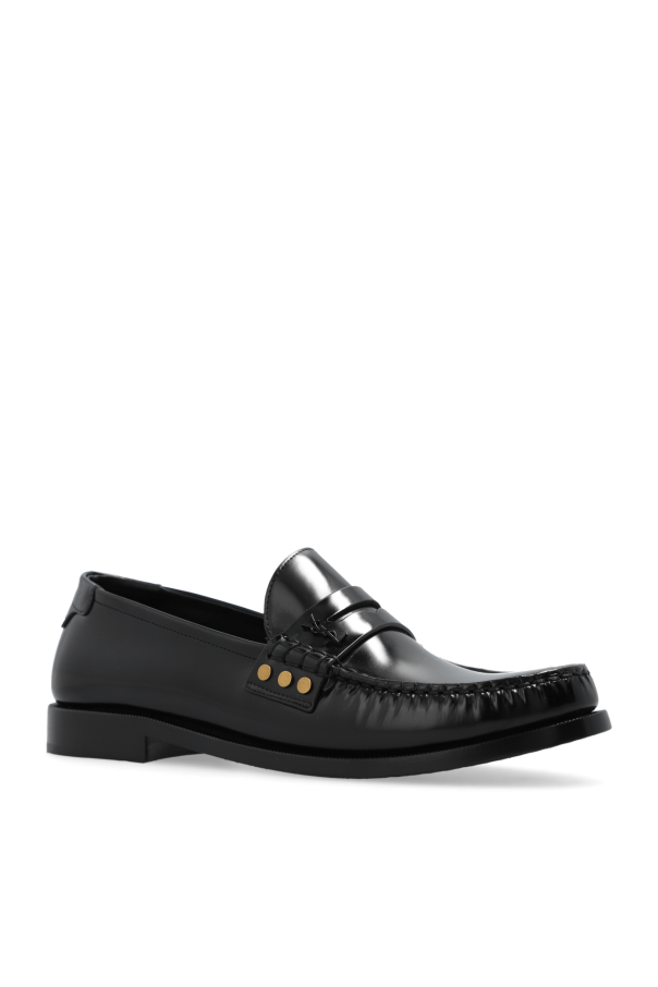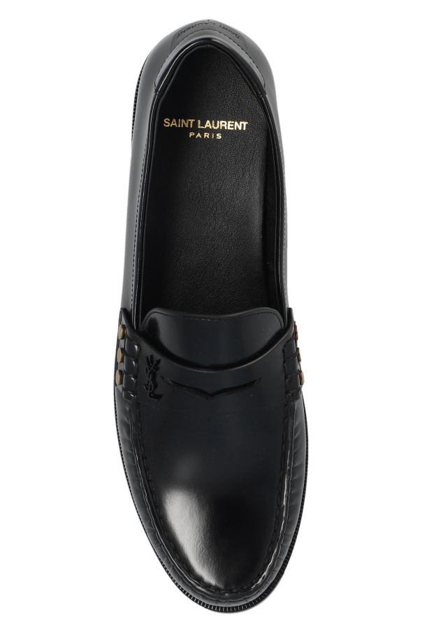 Black loafers from Saint Laurent. Crafted from patent calf leather, this pair is set on a black rubber sole.