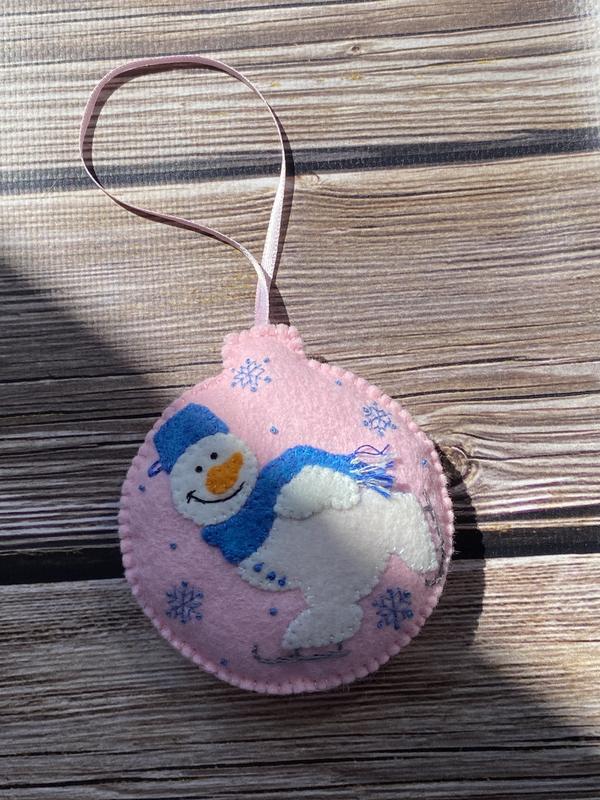 Зроблено в Україні?:Хендмейд ,Разновидность:Шары на елку ,Вид:Одна игрушка ,Тип:Снеговики ,Материал:Фетр ,Описание
