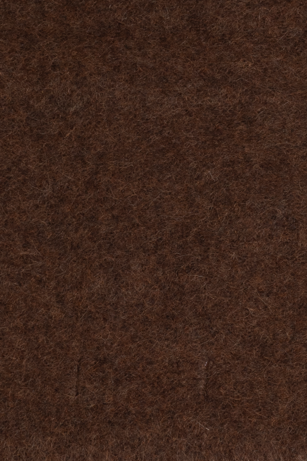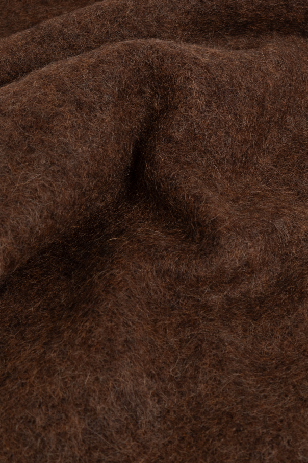 Introducing the Jacquemus Fringed Scarf, an exquisite accessory from the exclusive menswear collection. This luxurious scarf exemplifies elegance and sophistication, making it a quintessential addition to your autumn and winter wardrobe. Crafted from a sumptuous blend of mohair, alpaca, virgin wool, and polyamide, this scarf ensures both warmth and comfort. Its rectangular shape, generous length, and width allow for versatile styling, whether draped gracefully over the shoulders or wrapped snugly around the neck. The deep, rich brown hue adds a touch of understated elegance, suitable for any discerning gentleman. The scarf features long, loose fringes at one end, delivering a sophisticated flair and movement. Subtle branding with a small "Jacquemus" tag signifies its designer heritage, a nod to the modernist and innovative styling of Simon Porte Jacquemus. Why Choose This Product? Exquisite Design: Elegant rectangular shape with long fringes. Luxurious Materials: Premium blend of mohair, alpaca, virgin wool, and polyamide. Designer Label: Subtle "Jacquemus" branding for an added touch of prestige. Versatile Color: Deep brown hue complements a variety of outfits. Warm and Cozy: Ideal for cooler weather while maintaining an elegant look.