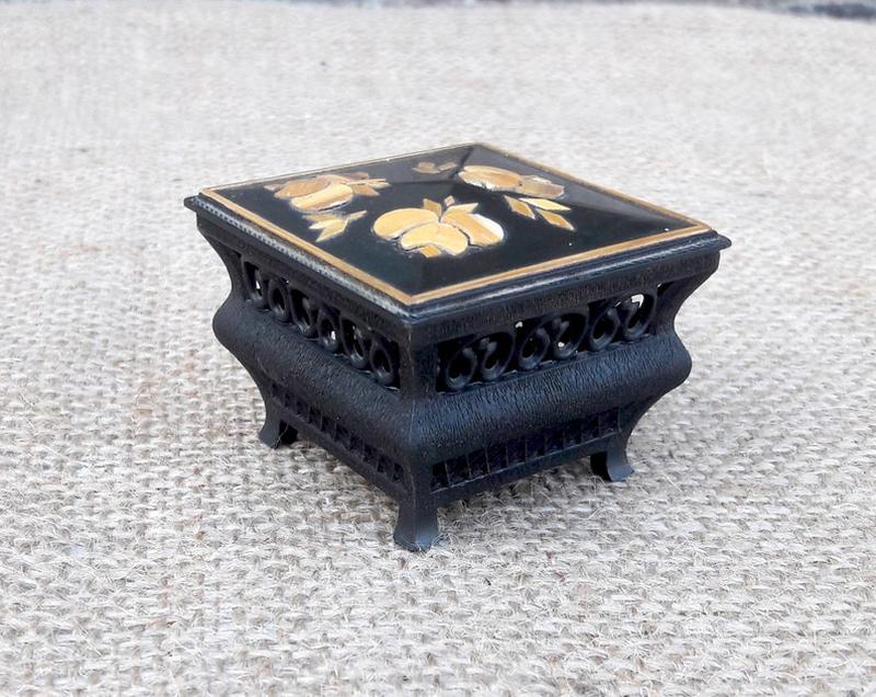 Станет отличным подарком как коллекционеру винтажа, даря особое очарование ушедшего времени, дополнит декор туалетного столика, послужит по назначению для хранения украшений, таблеток, бусин и прочей мелочи.Состояние: ИдеальноеЦвет:- Чёрный