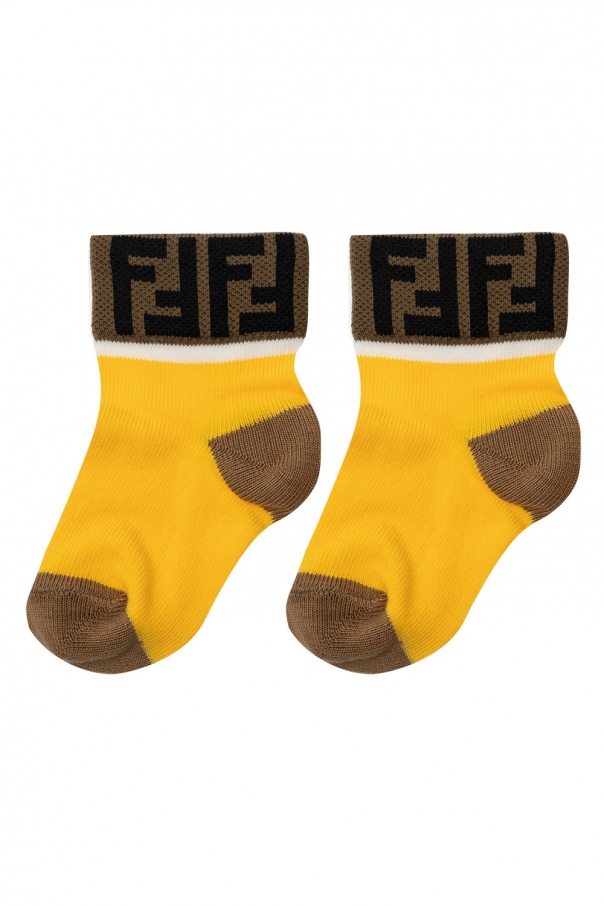 7-pack of multicolored socks from Fendi Kids. Made of cotton, each pair is decorated with a black logo embroidery and a cream case with drawstring fastening.