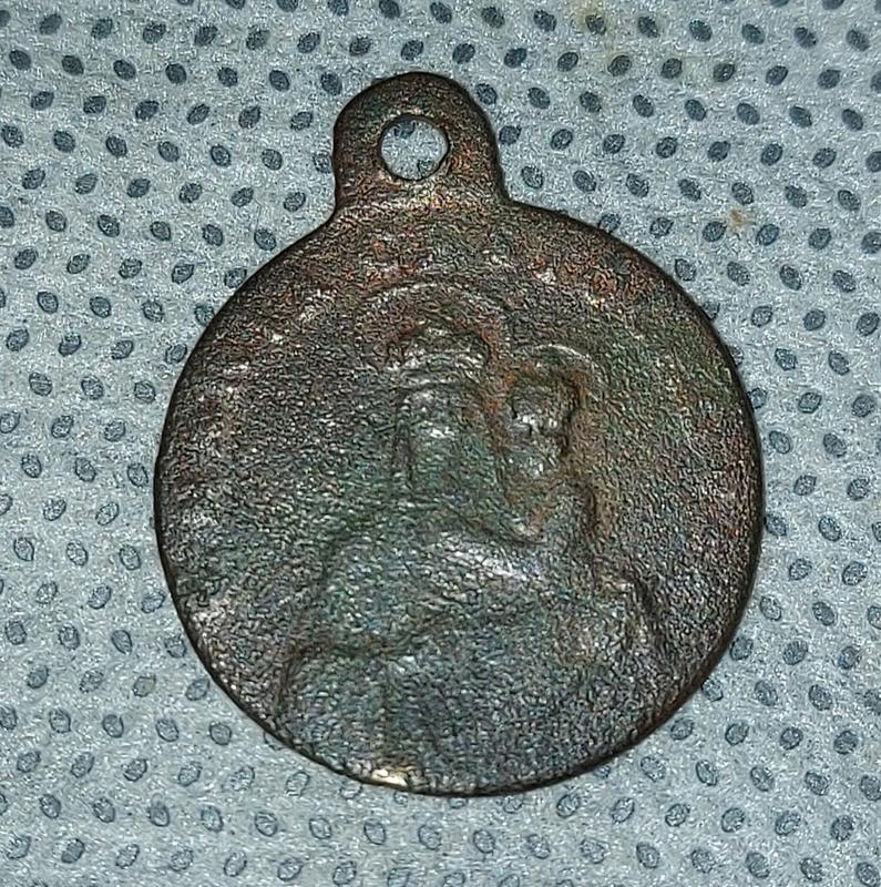 Польская иконка. Медальон, ладанка, подвеска-иконка S Maria Czestochoviensis. Нательная иконка 18-19 век.