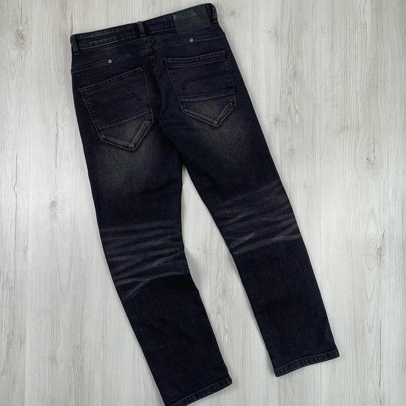 Темно-серые джинсы с осветлением в районе бедер и на карманах. Более прямая штанка. Материал хорошо тянется
