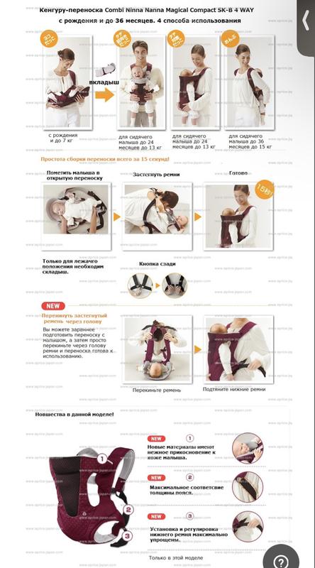 Данная переноска позволяет переносить малыша от самого рождения в четырех различных положениях в зависимости от возраста: