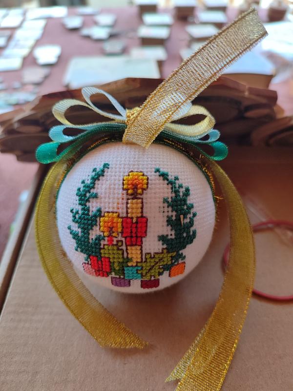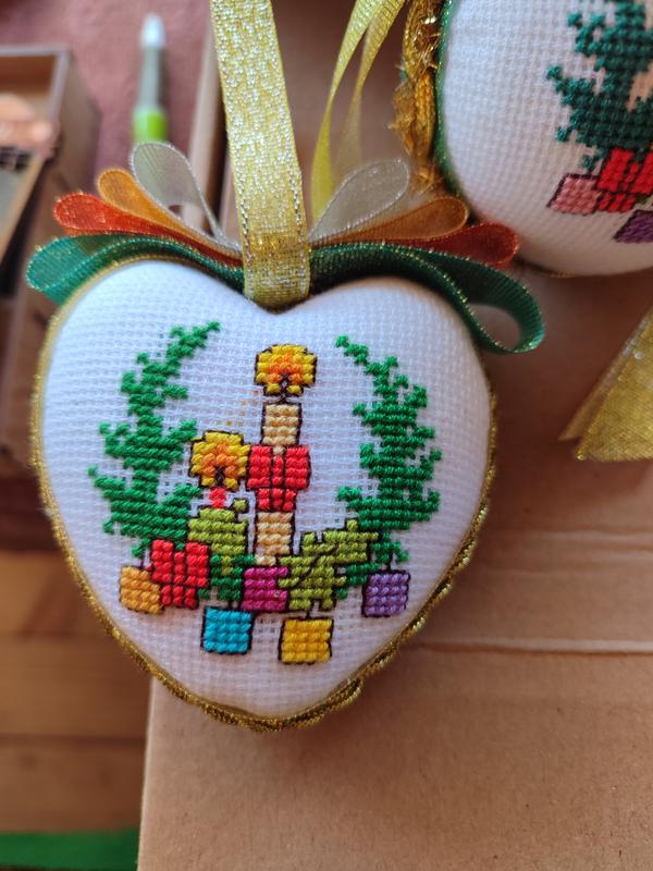 Новорічні прикраси ручної роботи. Вишивка двостороння.