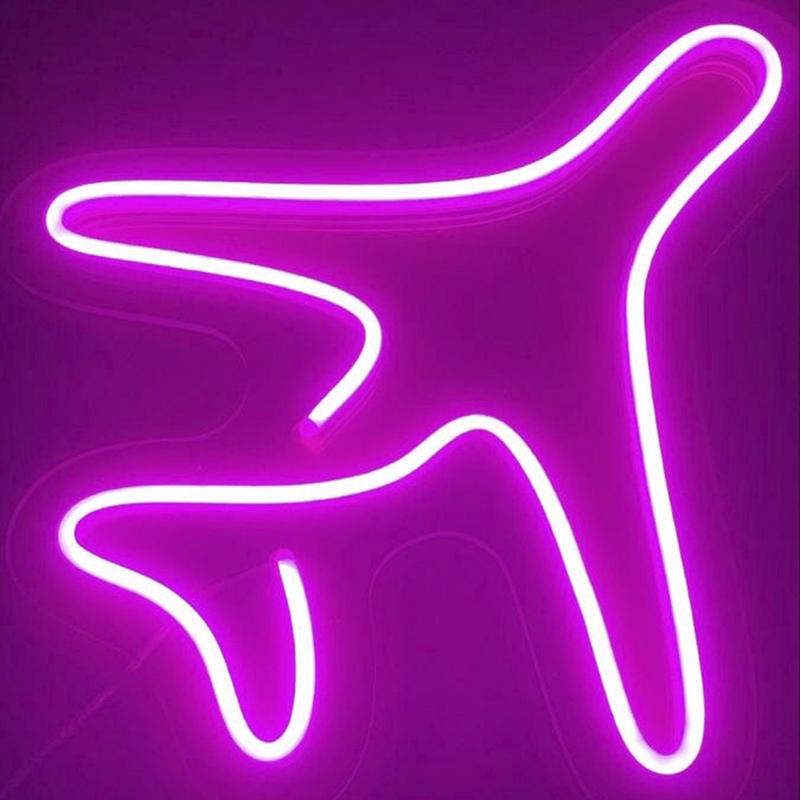 Эта неоновая вывеска в форме самолета станет ярким акцентом в любом интерьере.