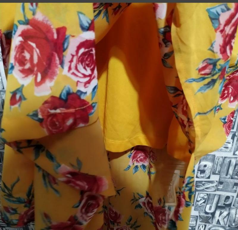 ОГ - 108-112, талія на резинці - 80-102, стегна - 124, довжина - 149см, шифон, є підкладка, по боках розрізи - 57см.А ви знаєте, що м'який жовтий колір сприятливий для гарного зору? То ж навіть якщо ви не офтальмолог, та і взагалі не медик, це все одно не означає, що не можна зробити свій внесок у зміцнення здоров'я нації. Носіть жовті речі, покращуйте зір в оточуючих, а заодно і власний настрій 😉