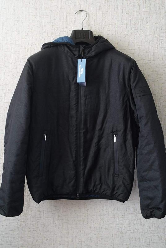 Мужской пуховик, от итальянского бренда премиум класса HARMONT & BLAINE, графитового цвета, несъемный капюшон. Артикул: ******.