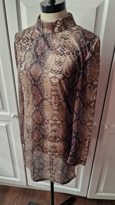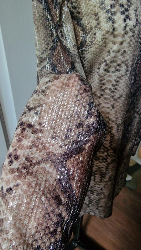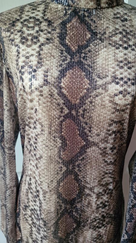 платье с реалистичным принятом питона ,за счёт нанесённый паеток,смотрится как питон на солнце