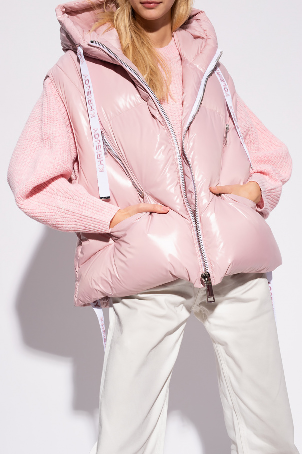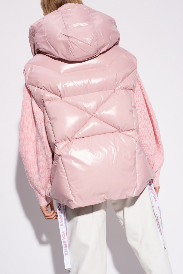 Pink quilted vest from Khrisjoy. Filled with goose down, this style fastens via a zipper and showcases distinctive drawcords with the label's lettering in white and pink, two slip pockets, two zipped pockets and silver-tone metal hardware.