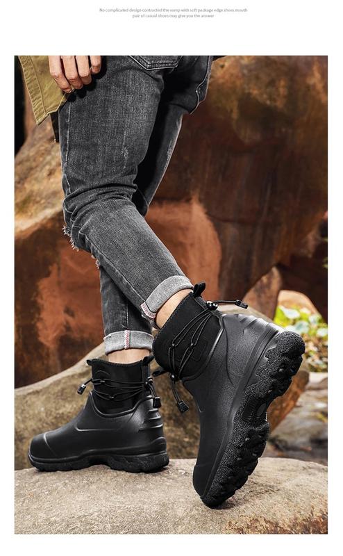 Мужские дождевые ботинки с мягким и теплым верхом EVA и резиновой нескользящей подошвой.
