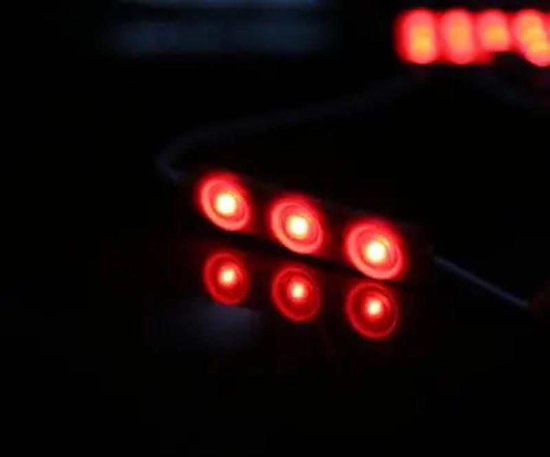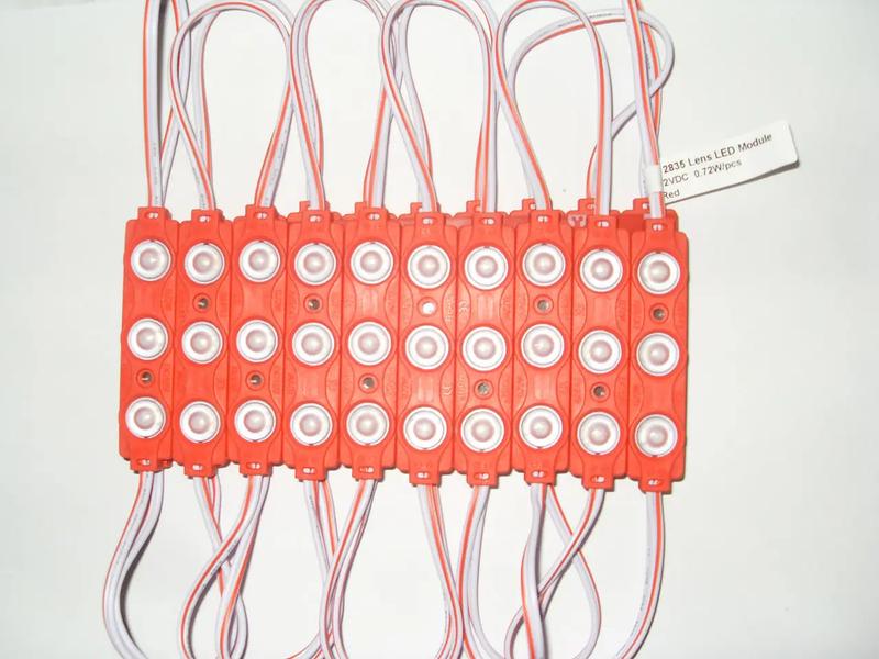 Высота - 7.1 ммМодули светодиодные три цветные светодиоды 2835 с линзой кластер 0.72 вт 12 вольт, модули с большим углом рассеяния 160 градусов, световой поток 70 люменов. Для изготовления рекламных вывесок, объемных букв, лайтбоксов малой толщины от 5 см.