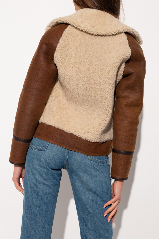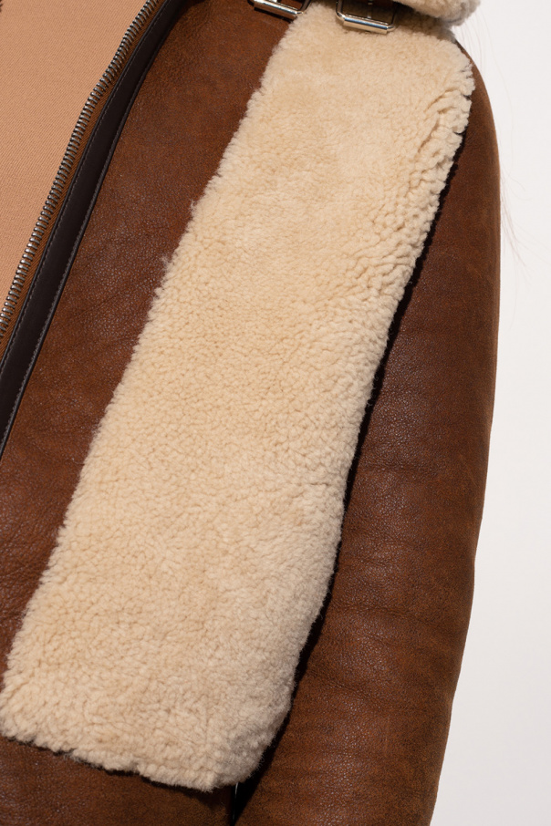 Brown and cream jacket from PS Paul Smith. Crafted from sheep leather, this style features a zip fastening, shearling panelling, a buckle strap neck fastening and two slip pockets.