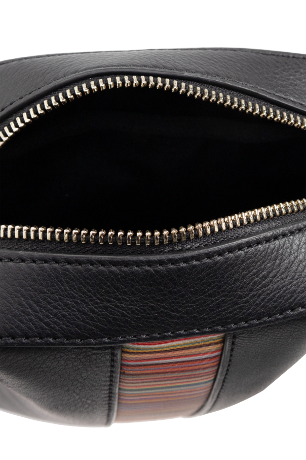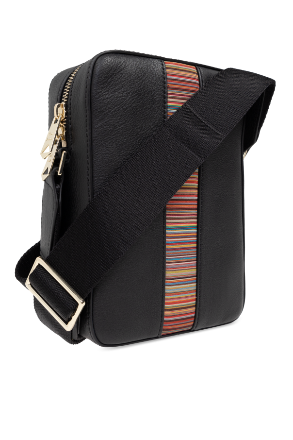 Introducing the Paul Smith Shoulder Bag, a paragon of sophisticated functionality wrapped in an aura of luxurious design. Crafted entirely from the finest 100% genuine leather, its sleek black exterior is accentuated with a distinctive fabric strap adorned with multicolored vertical stripes, injecting a dash of contrast and uniqueness. The bag's rectangular silhouette, with its rounded corners and vertical profile, speaks to a modern aesthetic while ensuring a snug fit against the body. The shoulder strap, broad and adjustable, is made from a robust, durable material offering unparalleled comfort and ease of wear. Gold metallic details, including a dual-pull zipper and buckles, enhance the bag’s elegance, making it a versatile accessory suitable for both casual and formal ensembles. Its minimalist interior, accessible via a top zipper, features a single main compartment without additional inside pockets, emphasizing a streamlined design focused on essential functionality. Despite its flat construction indicating limited capacity, this attribute further ensures the bag’s sleek form remains close to the wearer, providing both convenience and style. The absence of overt logos or branding allows the bag's quality and design to stand forefront, making it a subtle statement of luxury. Why Purchase This Product? Exquisite craftsmanship from 100% premium leather for durability and style. Unique fabric strap with multicolored stripes adds an exclusive touch. Gold hardware details lend an elegant finish. Adjustable, wide shoulder strap for superior carrying comfort. Versatile design suitable for a range of fashion styles and occasions.