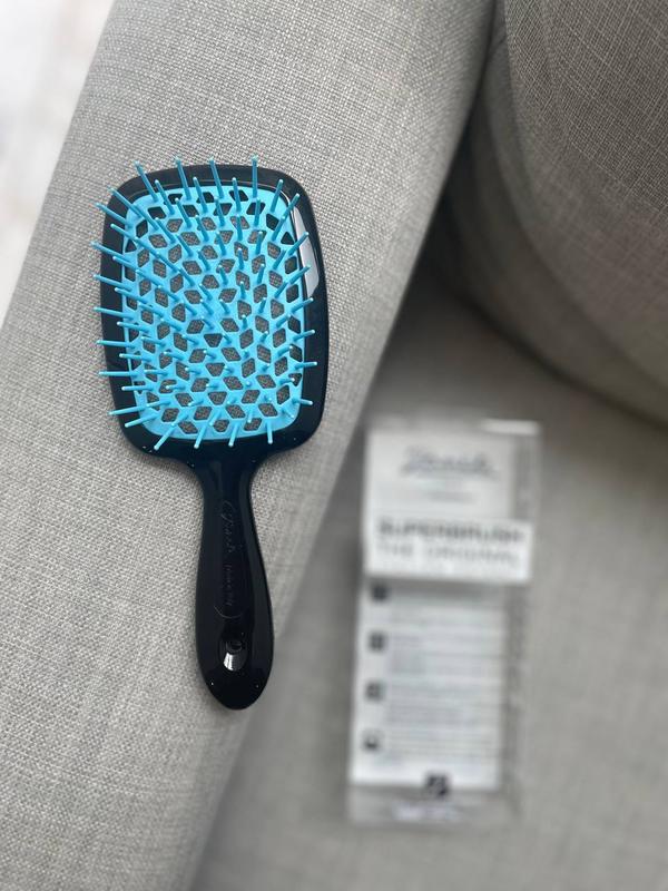 Расческа для волос Janeke 1830 Superbrush – профессиональная щетка с особой массажной базой и уникальными зубцами для расчесывания коротких, длинных, густых, тонких и вьющихся волос. Она может применяться даже для расчесывания особенно ломких или детских волос. Уникальное расположение зубцов в порядке пчелиных сот помогает горячему воздуху их фена равномерно проходить сквозь локон и не задевать кожу головы. На зубчиках есть особенные просечки, которые быстро и безболезненно распутывают, даже непослушные, пряди.