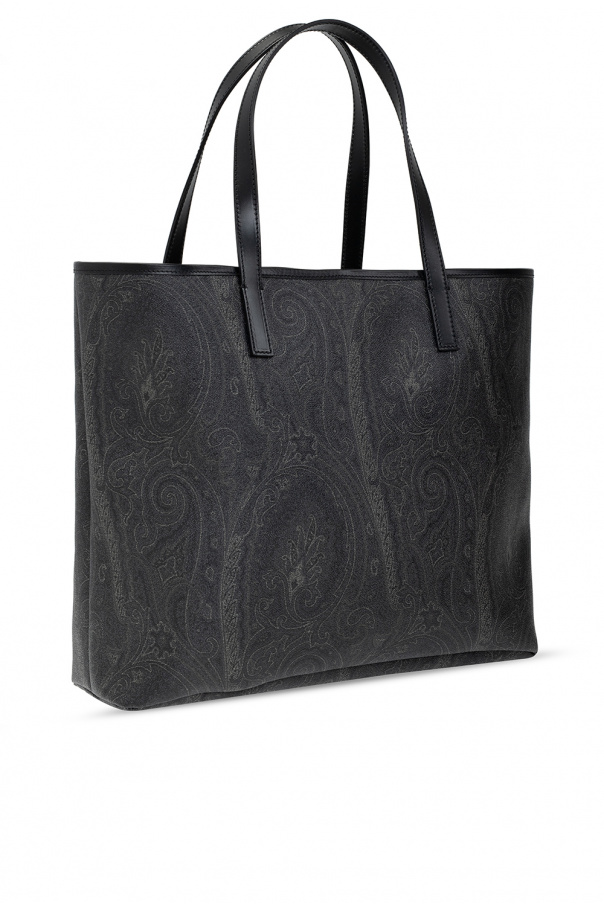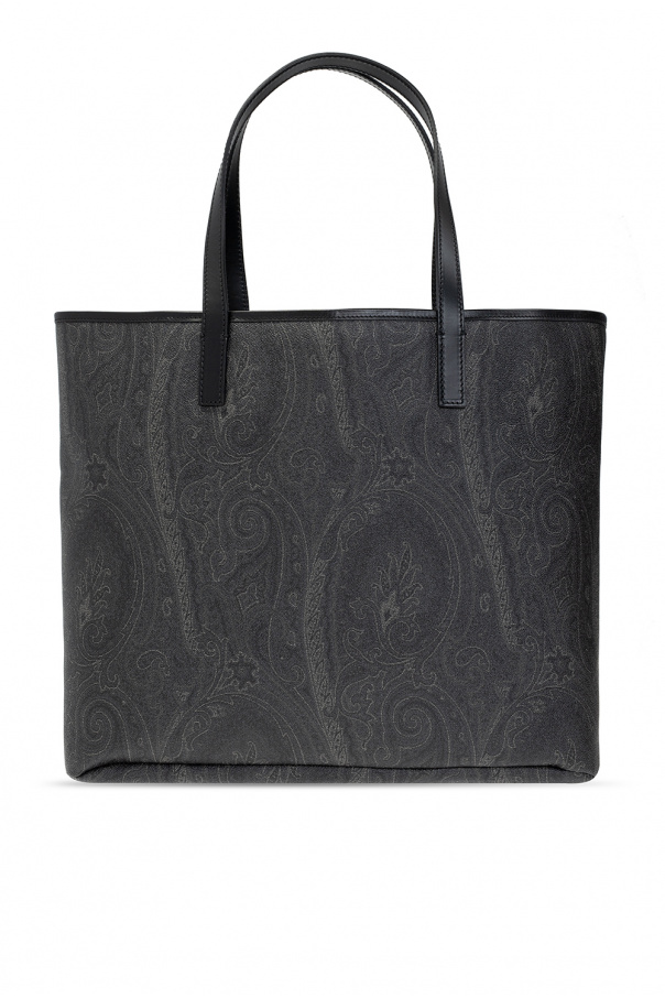 Black and grey shopper bag from Etro. Crafted from canvas printed with the brand’s signature paisley motif, this style is complete with a clip fastening, two half-round handles and one internal compartment with one zip pocket and two slip pockets.