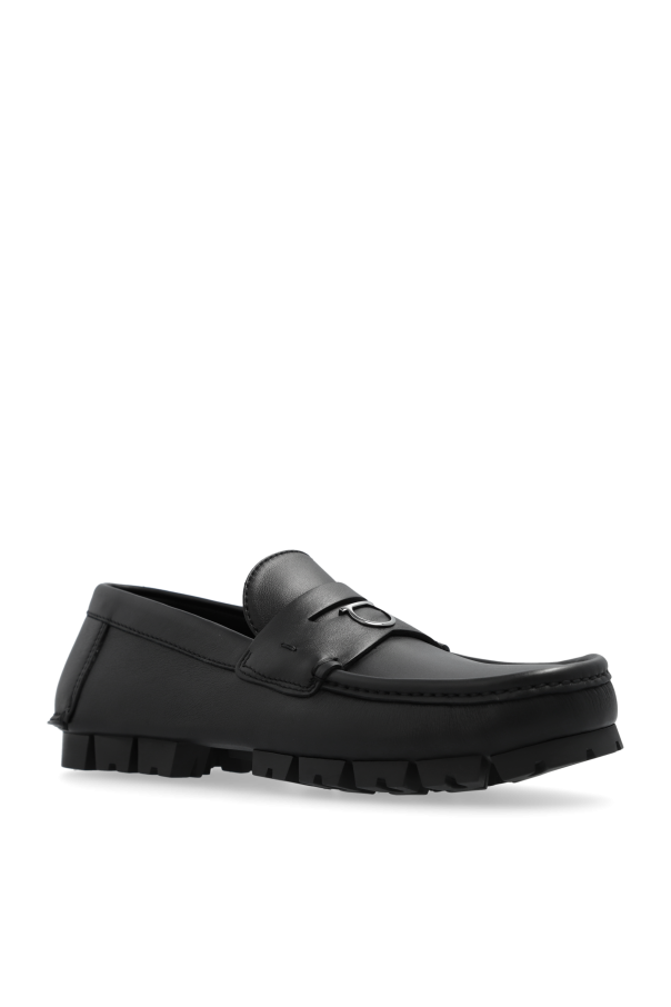 Introducing the quintessence of luxury and refinement in men's footwear: the 'Dougan' Moccasins by FERRAGAMO. Crafted from the finest calfskin leather, these moccasins epitomize elegance with their sleek, tapered silhouette and classic black hue. The meticulous construction reflects FERRAGAMO's renowned dedication to quality and style. The 'Dougan' features a distinctive rubber sole, adorned with pronounced grooves for enhanced grip and durability, making them as practical as they are stylish. The moccasin's upper is embellished with the iconic 'Gancini' logo in a subtle silver tone, serving as a hallmark of the FERRAGAMO brand's exquisite craftsmanship. A decorative strap across the vamp culminates in an ornamental buckle, adding a touch of sophistication to this timeless piece. Inside, the shoe boasts a 'Medium' type insole, graced with the FERRAGAMO name, ensuring both comfort and brand recognition. Whether for formal occasions or casual outings, the 'Dougan' moccasins are a testament to the wearer's discerning taste and appreciation for luxury footwear. Why Purchase the 'Dougan' Moccasins? Elegance and Practicality: A seamless blend of classic aesthetics and modern functionality. Exquisite Materials: Made from 100% calfskin leather, ensuring durability and a luxurious feel. Distinguished Design: The 'Gancini' logo and ornamental buckle signify FERRAGAMO's attention to detail and quality. Versatility: Perfect for a myriad of occasions, from formal events to everyday elegance.