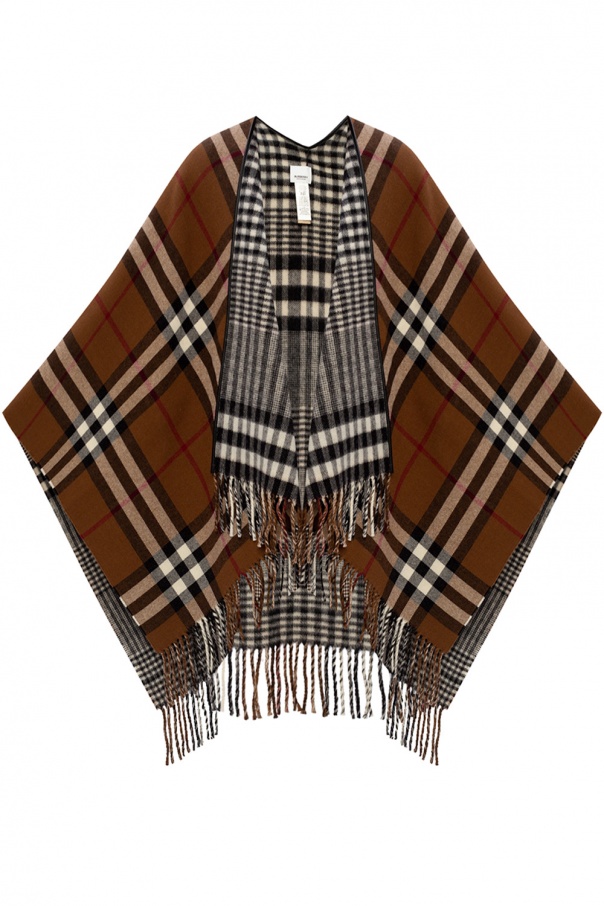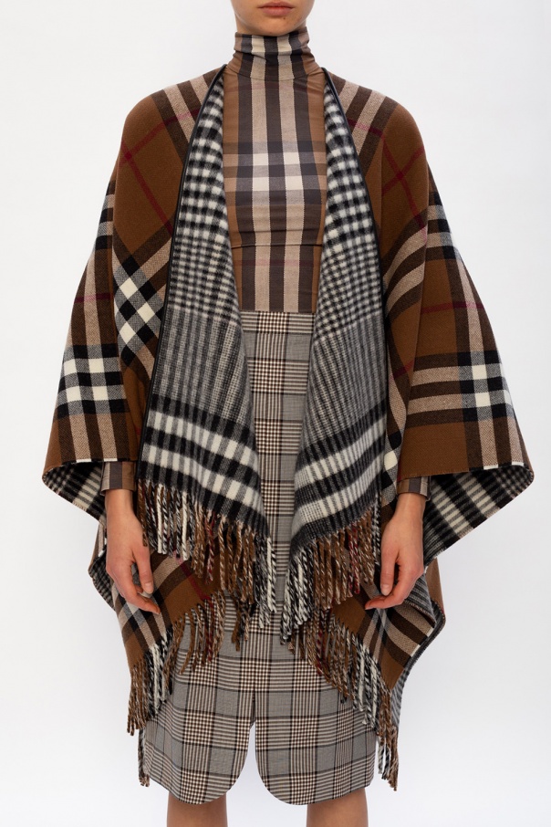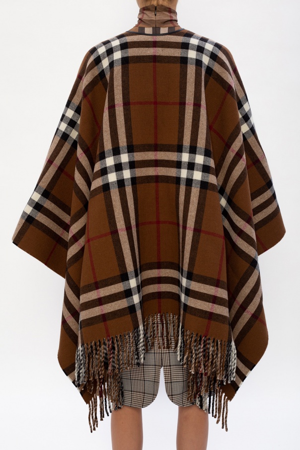 Multicolored poncho from Burberry. Crafted from wool, this garment comes enriched with fringes and a check pattern.