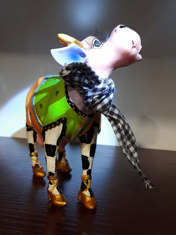 Гламурна корова з віями і шарфом. Розмір 15*14 см