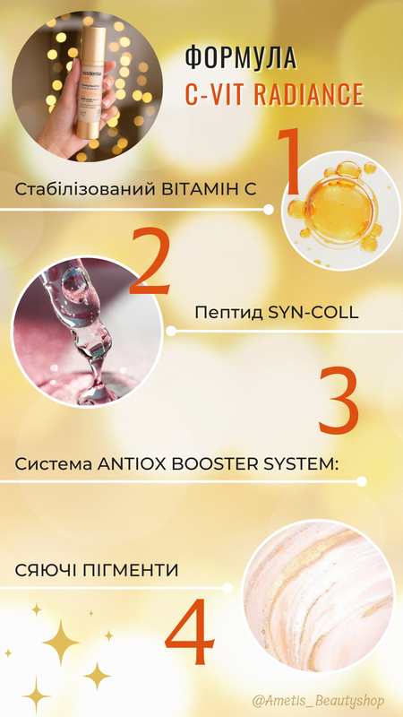 з 3️⃣ причин:🌟 Завдяки вмісту вітаміну С останнього покоління, інкапсульованого в ліпосоми та сяючим пігментам: