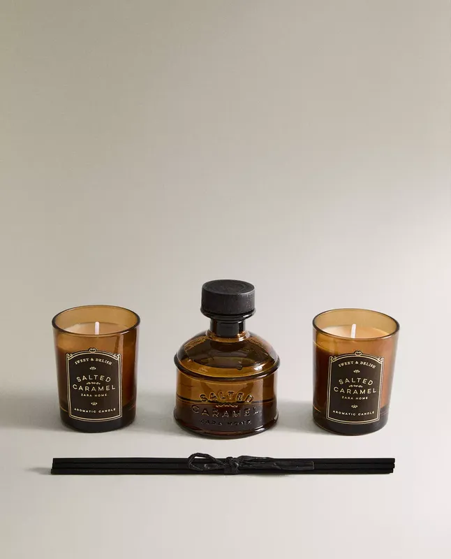 Для более детальной информации - пишитеКомплект, состоящий из аромадиффузоров (100 мл) и 2 небольших свечей (75 г) с ароматом «Salted Caramel».