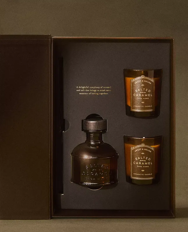 Комплект из 3 предметов.Salted Caramel <unk> Волшебный аромат карамели с нотками ванили и орехового масла неожиданно раскрывается острым соленым привкусом. Этот обольстительный аромат, подчеркнутый нотками пралине, напоминает о роскошных кондитерских Парижа, которые наполняют благоуханием снежную рождественскую улицу. В такие дни соленая карамель - идеальный ингредиент, который ждет твоего возвращения к теплому дому в холодный зимний день.