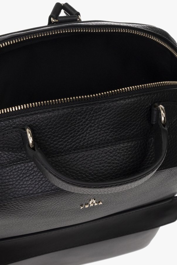 Black ‘Favola Medium’ backpack from Furla. Crafted from leather, this design features two separate zip compartments, a zip pocket accompanied at front with a metal logo plaque, a half-round handle, adjustable shoulder straps, gold-tone metal hardware and one internal compartment with a zip pocket.