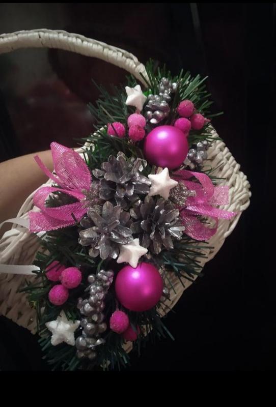 новогодний Рождественский декор для корзинки. украшение для корзинки на Крещение, прикраса на кошик для освячення води на Водохреща