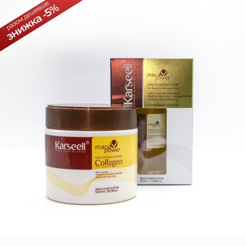 Преміальна олійка — MACA ESSENCE OIL від Karseell. Завдяки унікальній формулі інгредієнтів, які включають олії макадамії, аргани, олії чайного дерева, ромашки, алое та екстракти водоростей, жирні спирти та пантенол- ця олійка не лише живить та відновлює знесилене волосся, а й надає йому природний блиск.