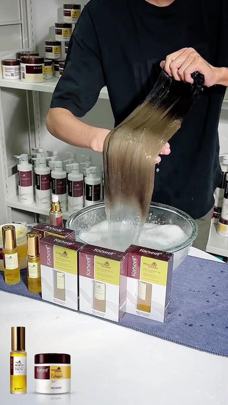 Унікальна формула поєднує рідкісну есенцію маку з технологією активного випаровування та проникнення колагену Karseell. Надає активуючу енергію від кореня до кінчика, відновлює волокно волосся та заповнює порожнини волосин, роблячі їх зволоженими, гладкими та блискучими. Пористі та ламкі пасма стануть м'якими, гладкими та еластичними, набудуть здорового блиску та шовковистості.Не втрачайте можливість придбати набір для догляду за волоссям Karseell Original та зробити собі прекрасний подарунок — волосся своєї мрії.