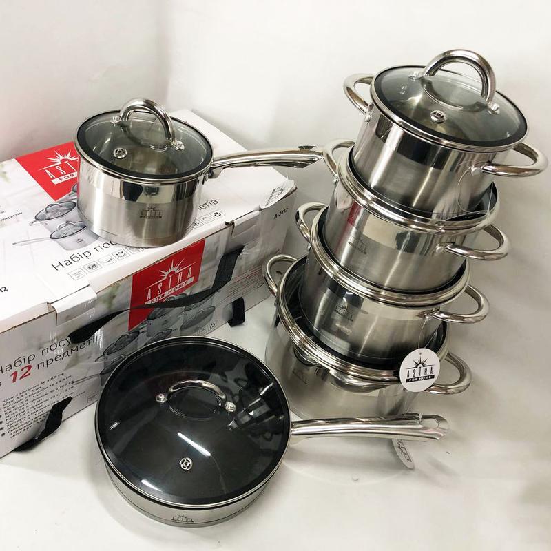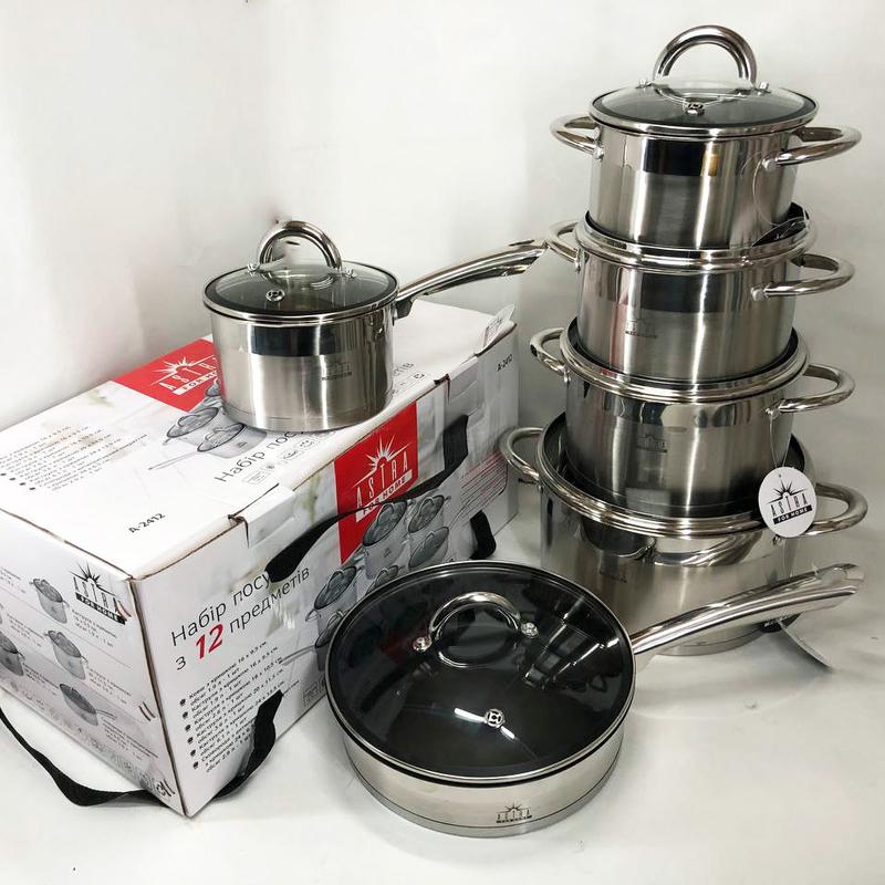 Самые лучшие кастрюли 12 предметов ASTRA A-2412, Современный набор кастрюль