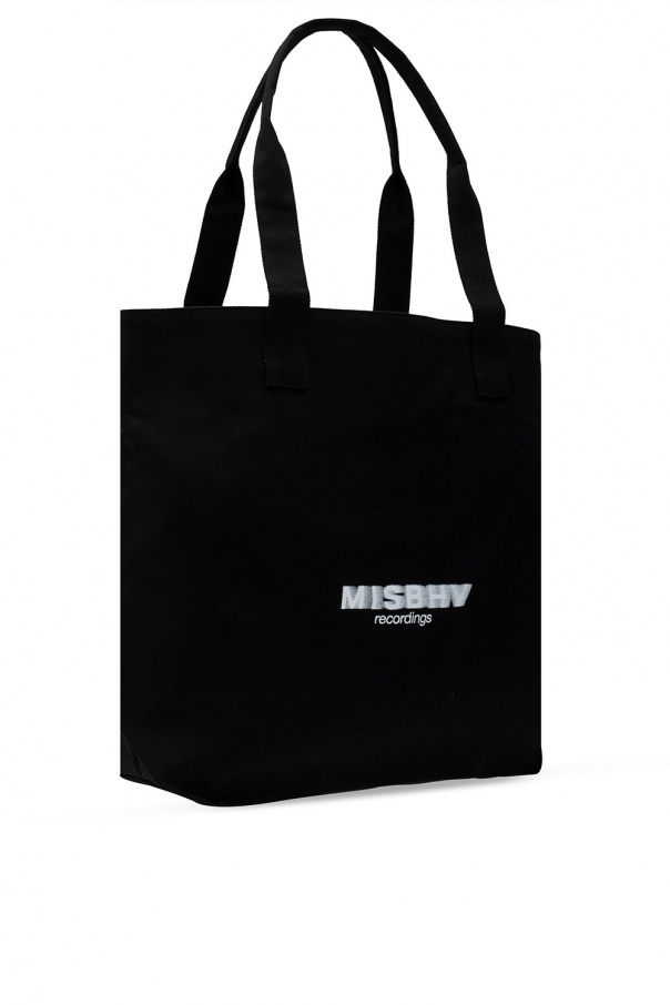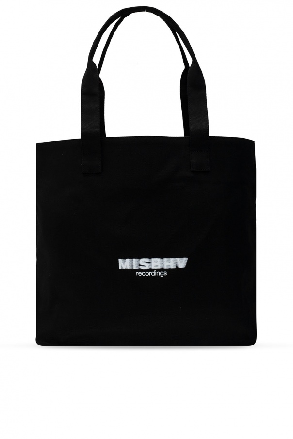 Black ‘Recordings’ shopper bag from MISBHV. Boasting a black and grey logo print, this cotton-crafted design employs two half-round handles and one internal compartment.