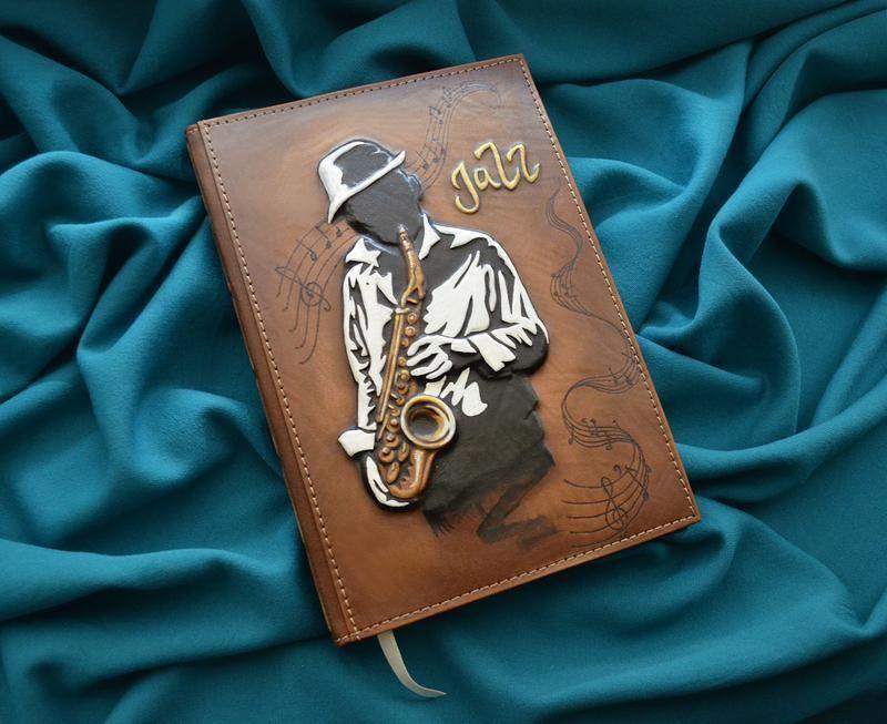 УНИКАЛЬНОСТЬ. Эксклюзивный блокнот ДЖАЗМЕН" является полностью авторской ручной работой, что делает его единственным в своем роде.