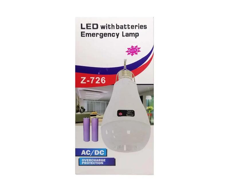 Лампочка з акумулятором 2 x 18650 моделі Z-726 є інноваційним рішенням для освітлення, яке може бути використане у випадках частих відключень електроенергії.