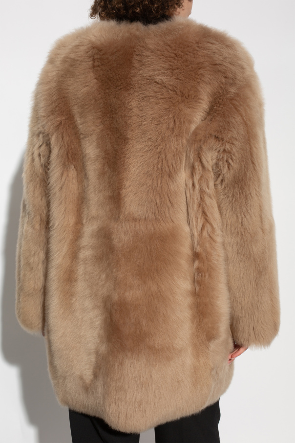 Discover the epitome of luxury with our Beige Lamb Fur Coat from the exclusive collection of renowned designer Fabiana Filippi. This exquisite piece is crafted from the finest natural lamb fur, ensuring unparalleled softness and warmth. Designed with a classic, loose silhouette, this coat falls gracefully to mid-thigh, featuring long sleeves that provide both elegance and comfort. The minimalist design is accentuated by its discreet side pockets and the absence of visible buttons or zippers, giving it a sleek and sophisticated look. The coat is secured with elegant hooks, maintaining its refined aesthetic. The rich beige hue adds a touch of timeless elegance, making this coat a versatile addition to any wardrobe. Whether worn over evening attire or paired with casual outfits, it exudes an air of effortless sophistication. Why Choose This Product? Crafted from premium natural lamb fur for supreme softness and warmth. Classic, loose silhouette that flatters any body type. Discreet side pockets for added functionality. Minimalist design with no visible buttons or zippers. Elegant beige color that complements any outfit. Designed by Fabiana Filippi, a brand synonymous with luxury and craftsmanship.