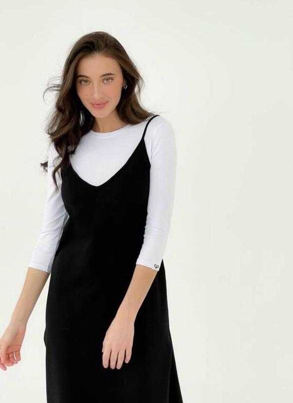 Базовое платье, можно создать миллион образов, сочетать буквально с любой одеждой. Я его немного укорочила на рост 160 см. Замеры запить