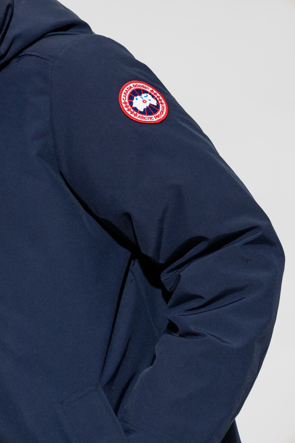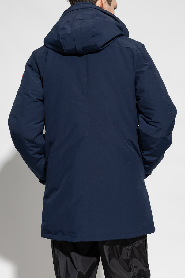 Navy ‘Chateau’ down jacket from Canada Goose. Fastened with a two-way zip, this garment features a logo patch, two slip pockets, one zip pocket, long sleeves, ribbed trims and internal shoulder straps. Temperature range: -15°C / -25°C.