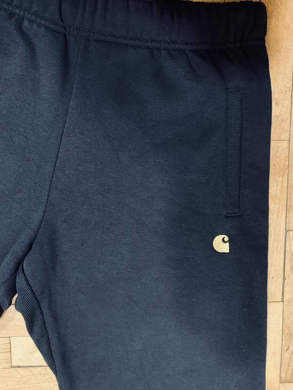 •Темно-синие брюки в идеальном*Спортивные брюки Carhartt Work in Progress Chase изготовлены из матовой смеси хлопка и полиэстера, которая обеспечивает тепло и комфорт. Одежда также имеет регулируемый пояс и задний карман, а также изящный фирменный знак в виде вышитых логотипов «C».